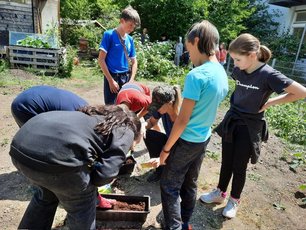 Selbst auszusähen und erwartungsfroh den „klasseneigenen“ Erbsen und Radieschen entgegenzufiebern, bereitet den Schüler*innen zudem große Freude.
