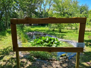 Wir planten einen Naturrahmen, durch den die Kinder den Schulgarten inklusive des Teiches auf eine besondere Weise betrachten können.
