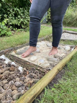In diesem Sommer wurde der Barfuß-Sinnespfad mit großem Einsatz einer Klasse 8/9 in-stand gesetzt und wieder zur Nutzung freigegeben. Mit Rindenmulch, Zapfen, Kies, unter-schiedliche Steinarten sowie Gras wurde eine tolle Vielfalt geschaffen. Ebenfalls haben sie eine „Patenschaft“ für zwei Kleinbeete übernommen. Erdbeerpflanzen wurden gesetzt, Radieschen und Möhren ausgesät.