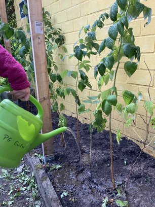 Das berufsvorbereitende Gartenprojekt hat das marode Rank Gerüst im Himbeerbeet erneuert und eine Neupflanzung durchgeführt.