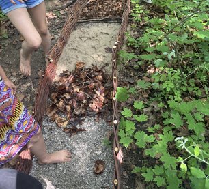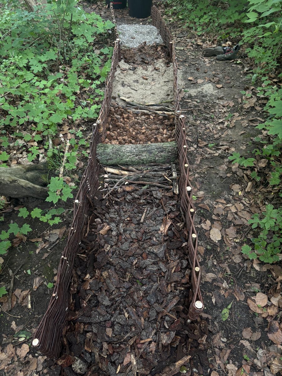 Besonders schön war: Die Kinder konnten sich zusätzlich eigene Materialien aus der Umgebung suchen und ihren ganz persönlichen Abschnitt des Pfads gestalten. Dabei wurden Blätter, Stöckchen oder Erde verwendet – je nachdem, was sie spannend fanden. So wurde der Barfußpfad nicht nur erlebt, sondern auch kreativ mitgestaltet.