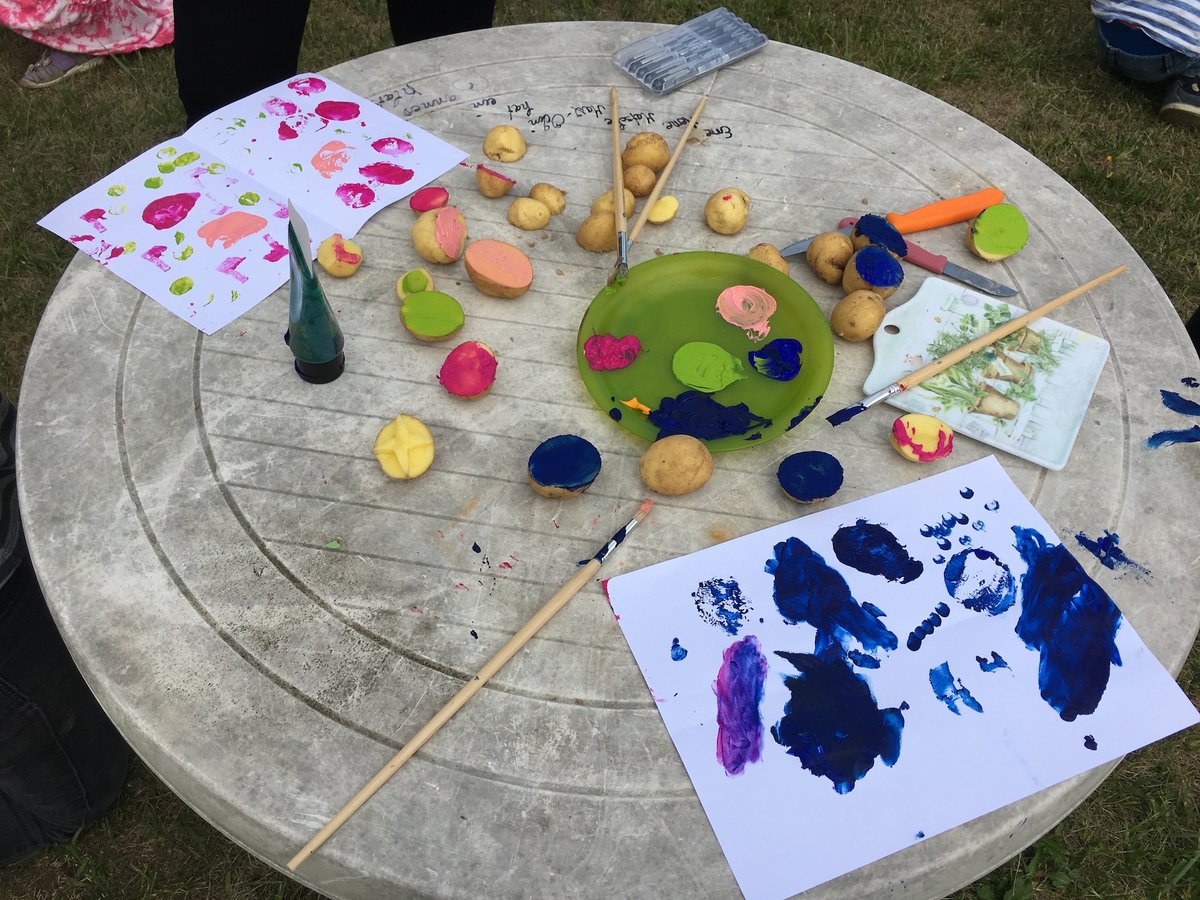 Im Verlauf des vergangenen Sommersemesters 2018 arbeitete eine Gruppe von Studenten der Grundschulpädagogik im Rahmen eines Seminars an ihren theoretischen Kenntnissen zur Gestaltung und Organisation eines Schulgartens. Dafür erfolgten praktische Arbeiten in einem Kleingarten der KGA Weiße Rose e.V. in der Rostocker Südstadt, der als öffentlich zugänglicher Erlebnisgarten konzipiert ist. Zu den Arbeiten gehörte das Anlegen von Beeten und Kompost, aber auch das Errichten einer Kräuterspirale und eines Insektenhotels. Am 13.7.2018 wurde zum Semesterabschluss und im Bezug zum Tag des Schulgartens 2018 ein Erntefest organisiert. Dafür war eine Kindergruppe der Kita Rappelkiste, die ebenfalls regelmäßig in dem Garten tätig ist, eingeladen. Nach einem Begrüßungsspiel konnten die Kinder und weitere Gäste aus der Kleingartenanlage an Stationen im Garten mehr über die Projekte der Studenten erfahren. Am Kompost und am Insektenhotel kamen Becherlupen zum Einsatz, um mehr über die Nützlinge im Garten zu erfahren. An der Kräuterspirale durfte nach Herzenslust gerochen und probiert werden. Zudem entstanden hier minzige Limonade und Kräuterquark, die das Buffett verstärken sollten. Und natürlich wurde auch geerntet. Einige Kartoffeln wurden für Kartoffeldruck verwendet, so dass alle Kinder ein Andenken an diesen Tag mit nach Hause nehmen konnten. Salat und Mangold wurden u.a. zu Smoothies verarbeitet. Zwischendurch bestand die Möglichkeit, sich mit den Produkten des Gartens oder einem leckeren Stück Kuchen zu stärken. Zur Verabschiedung wurden in einem Spiel noch ein "Schuhsalat" produziert.