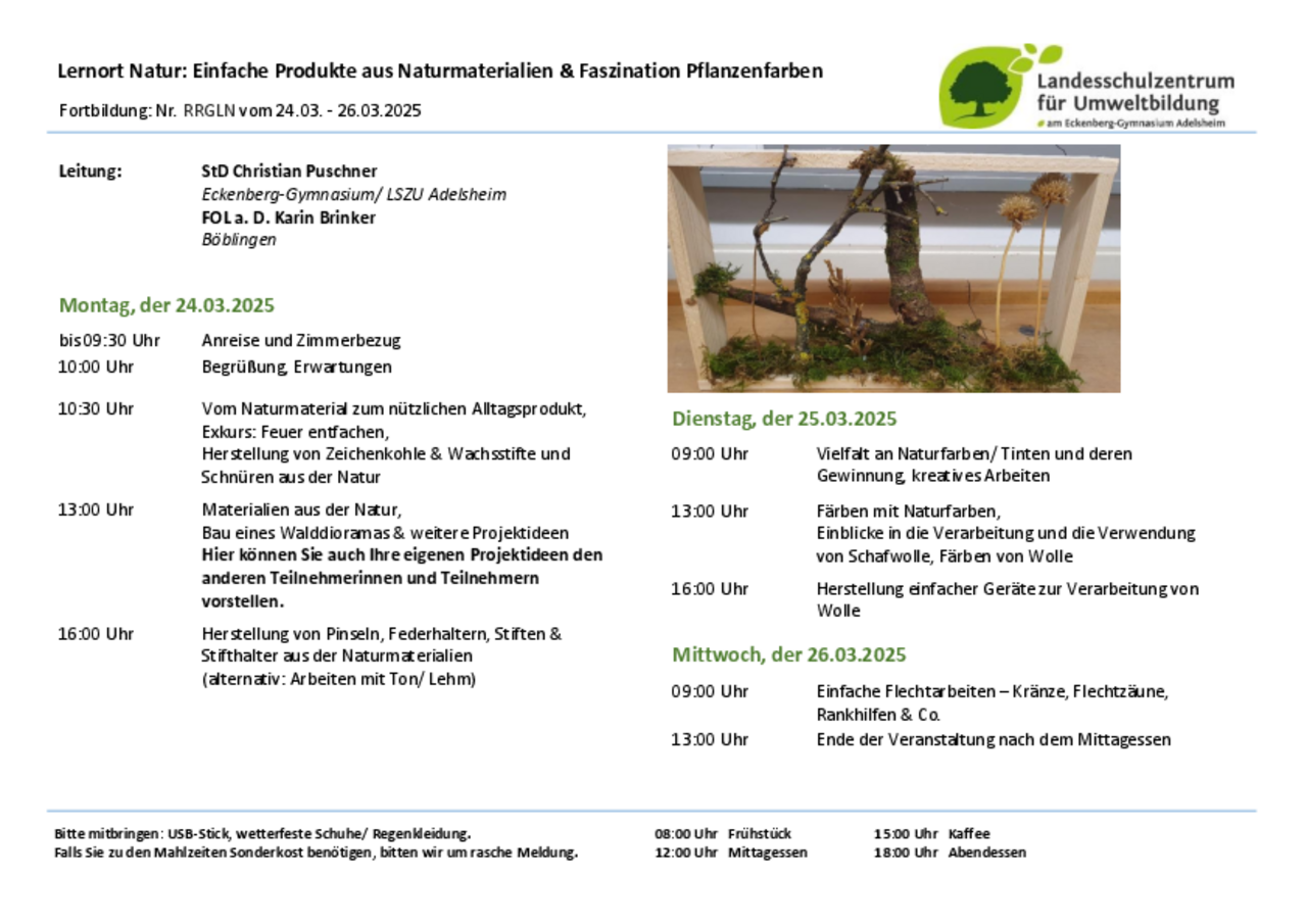 Fortbildung zum Thema "Naturmaterial und Pflanzenfarben" (24.03 - 26.03)