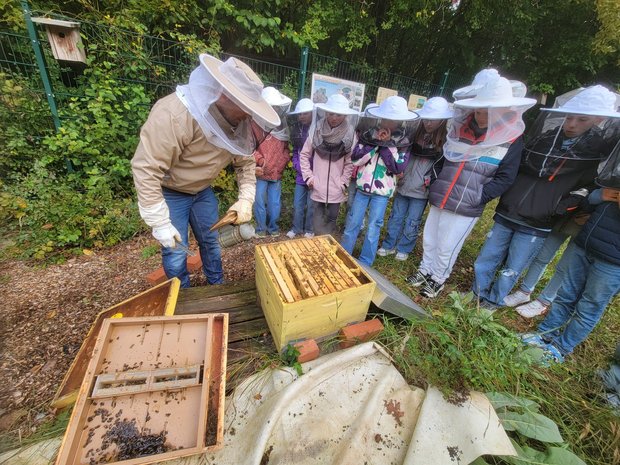 Am Honigbienenstand erfuhren sie, welche wichtige Rolle Honigbienen für das ökologische Gleichgewicht in der Natur spielen und welche Vielfalt an Produkten sie für uns bereitstellen. Beim Modul „Feuer entfachen“ konnten sie erleben, wie Menschen früher ohne moderne Hilfsmittel Wärme und Licht erzeugten. Besonders spannend wurde es beim Untersuchen der Tiere im Kompost aus dem schuleigenen Garten – dort wimmelte es von Asseln, Springschwänzen und anderen kleinen Helfern, die die dort anfallenden Gartenabfälle ab- und umbauen.